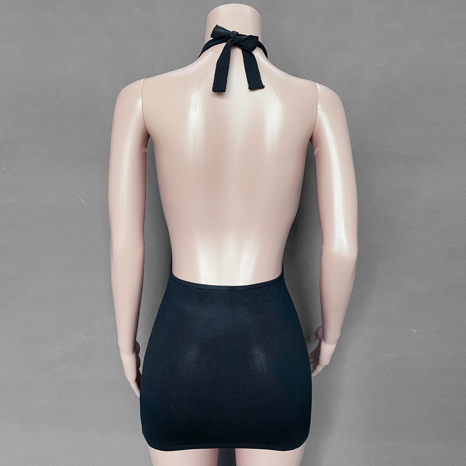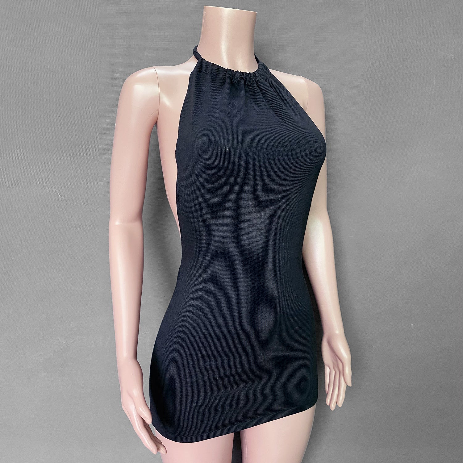 Classic Sleeveless Cotton Mini Dress with Halter Top and Open Back