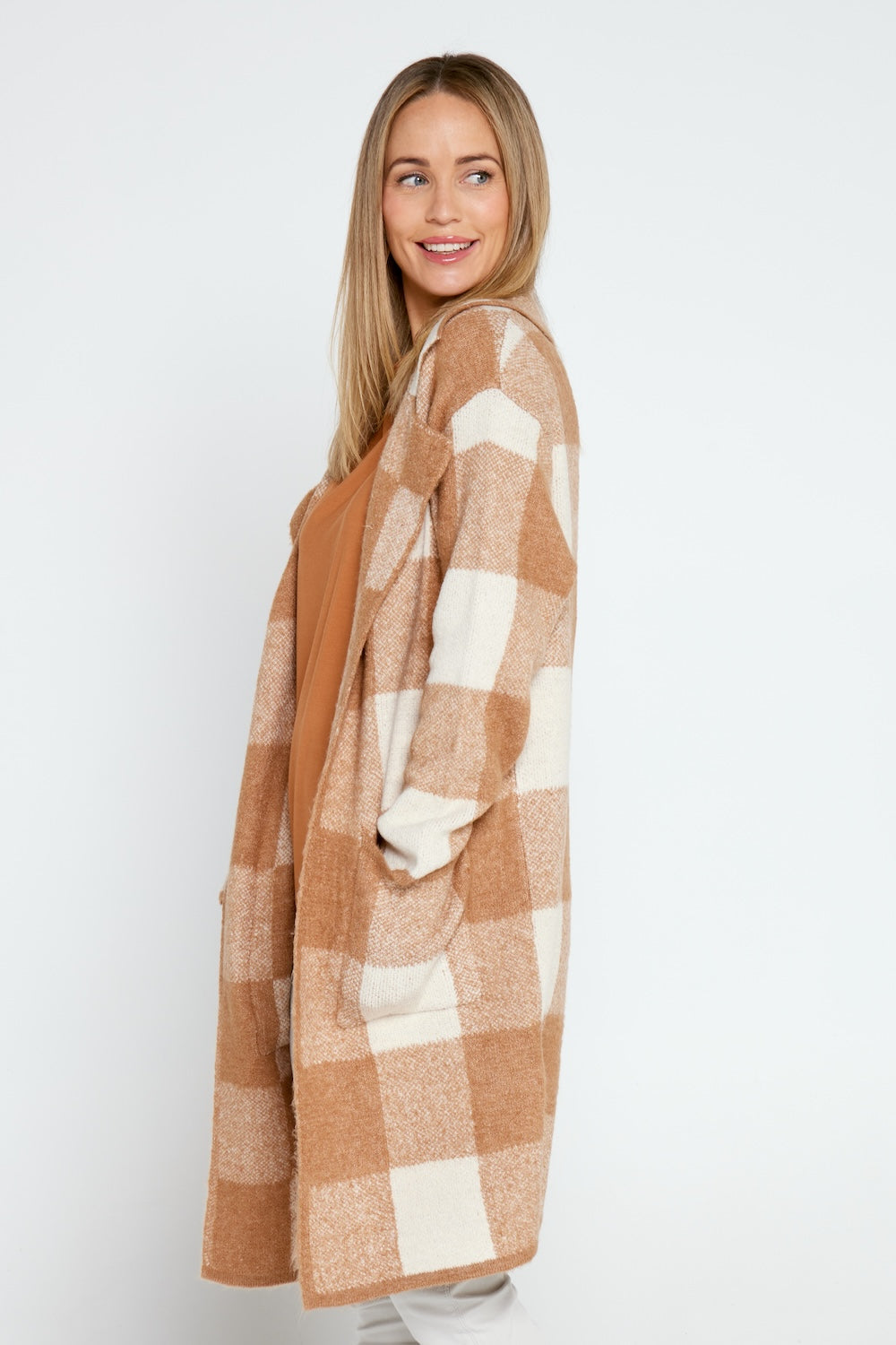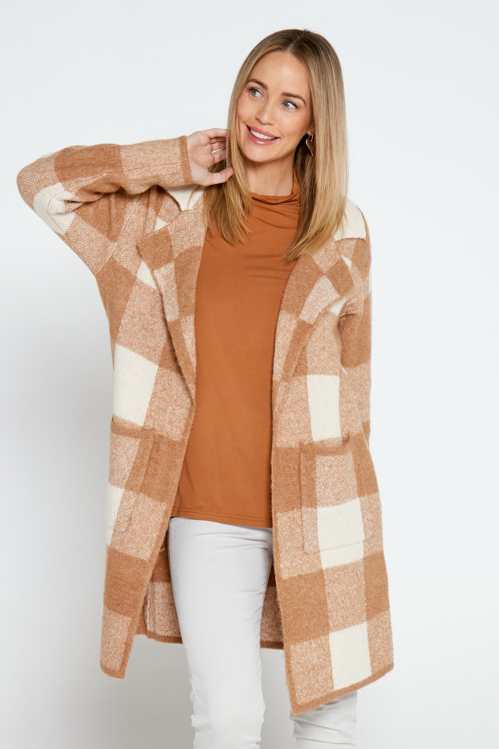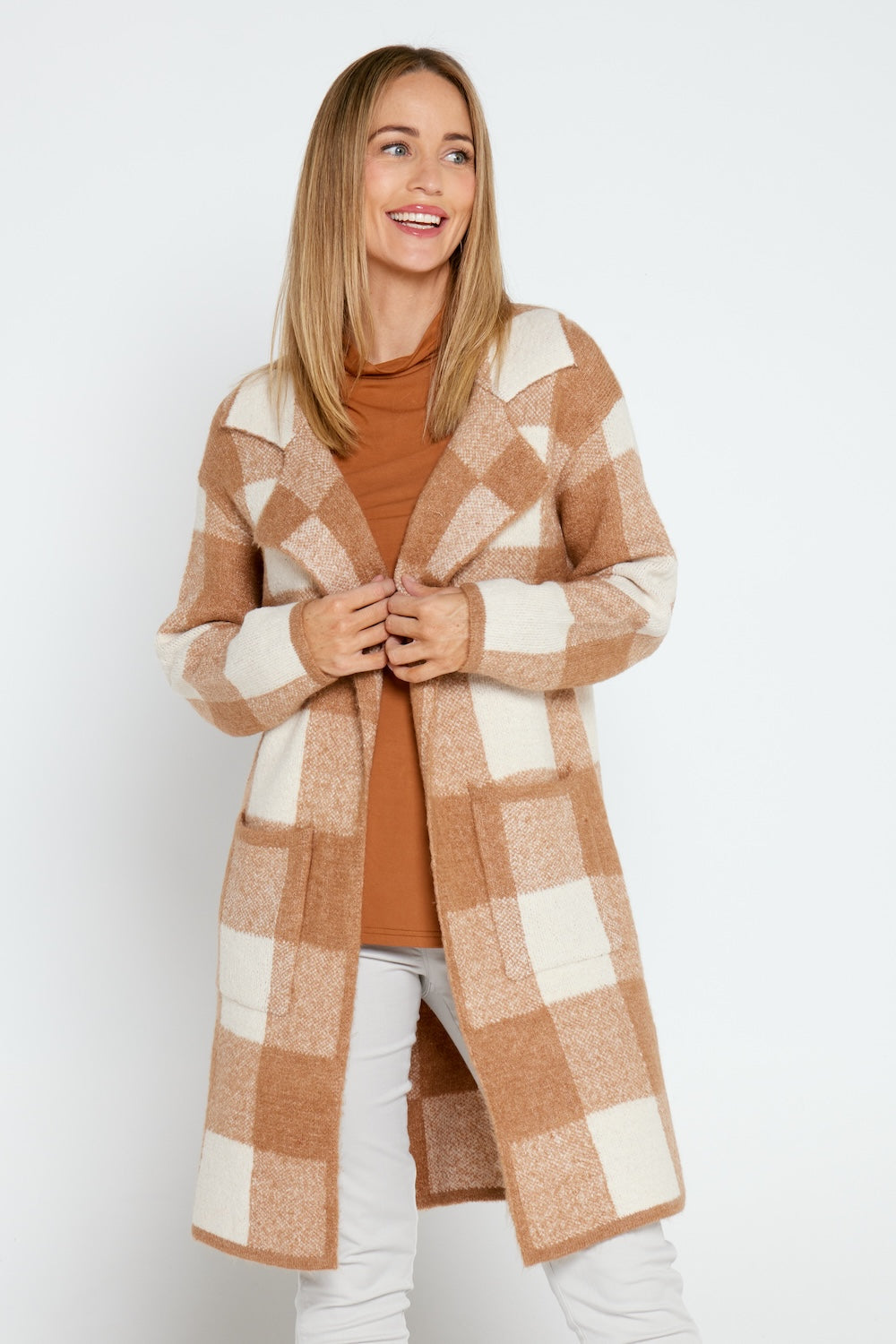 Jessa Wool Blend Knit Jacket - Brown/Cream Check