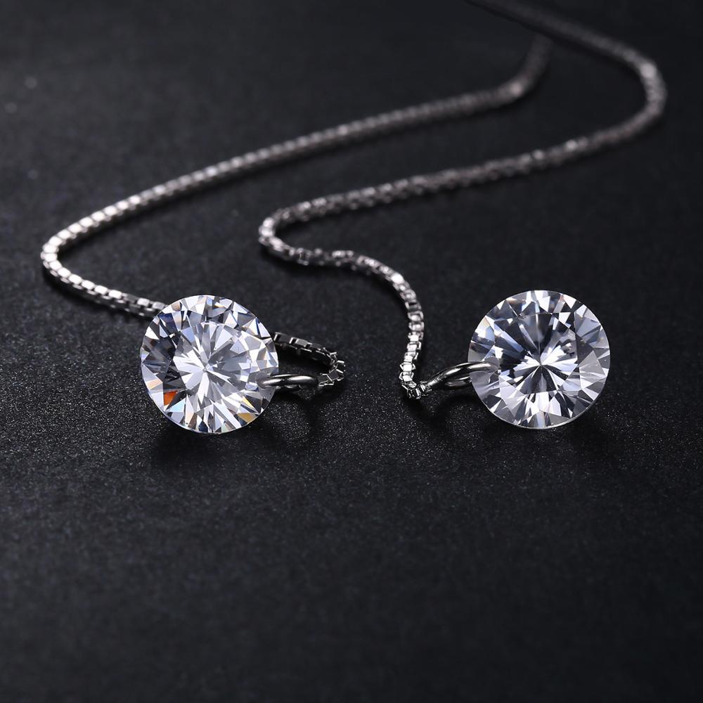 Authentic 925 Sterling Silver Cubic Zirconia Long Woman Drop Earrings