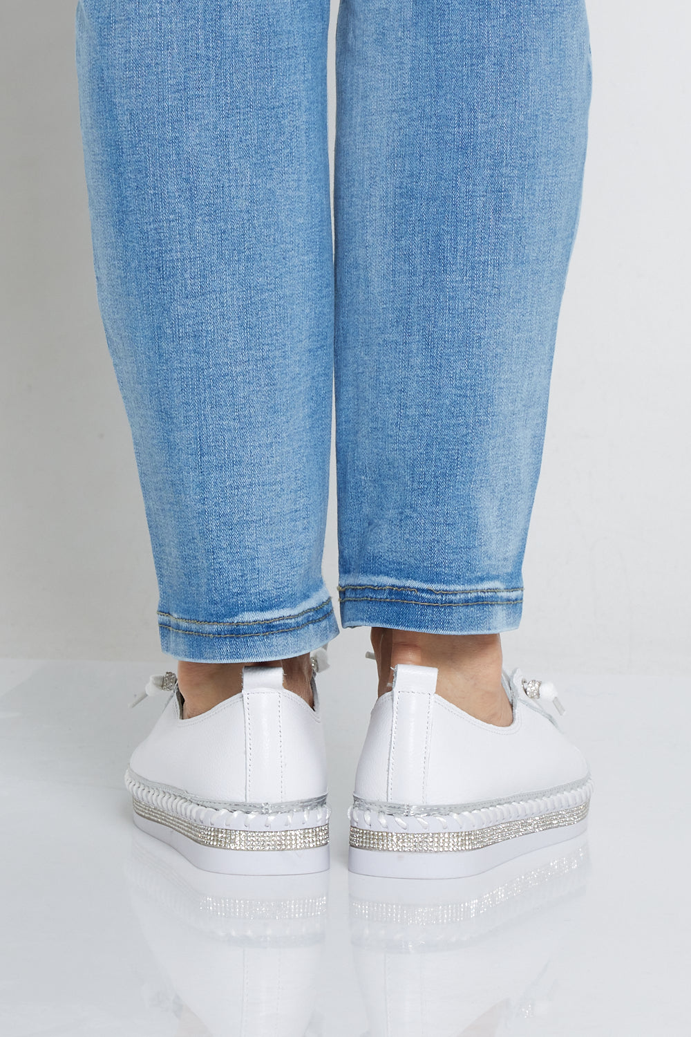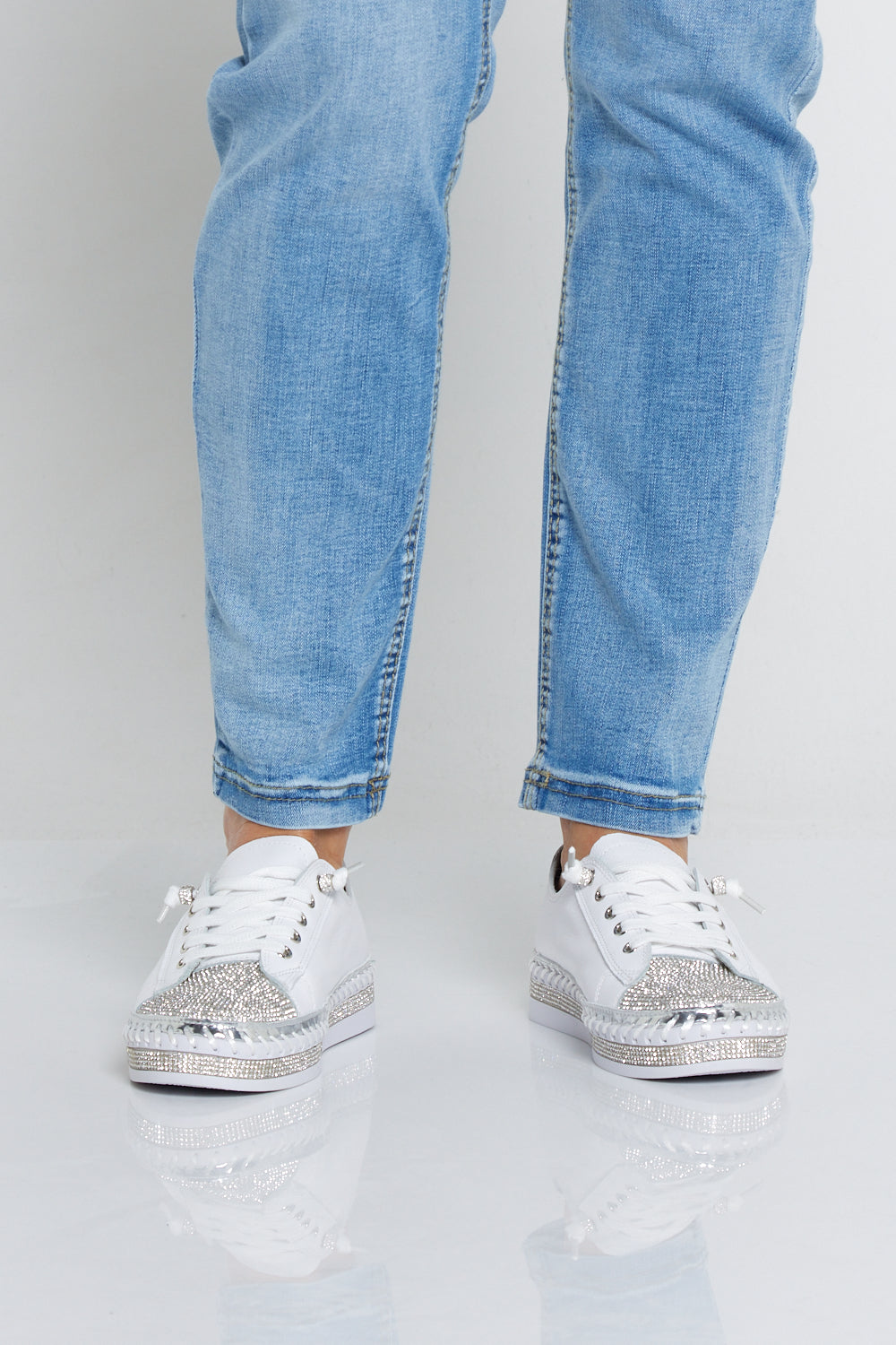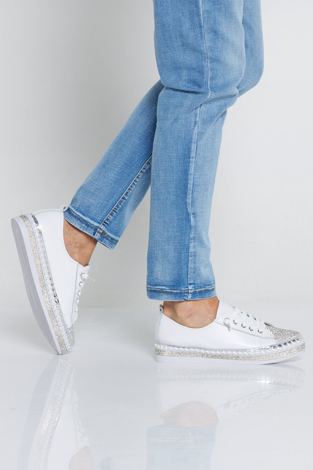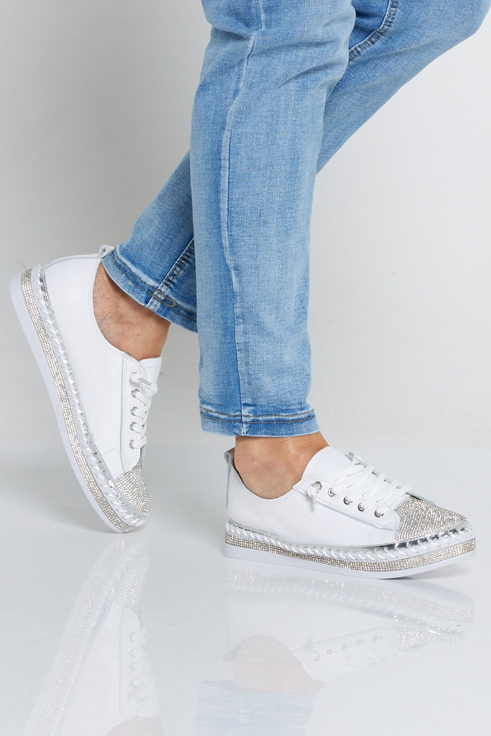 Sia Sparkle Leather Sneakers - White/Diamanté