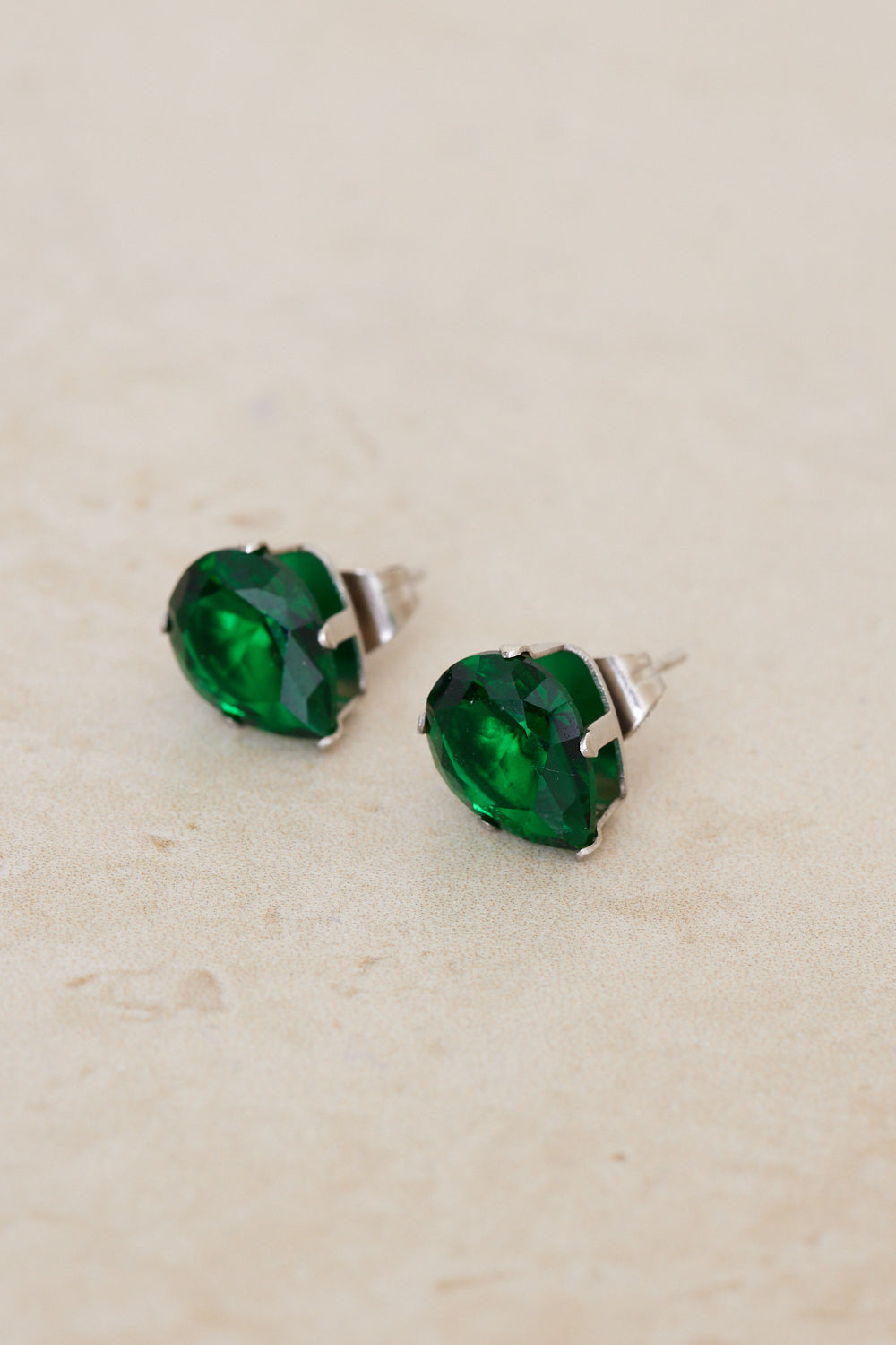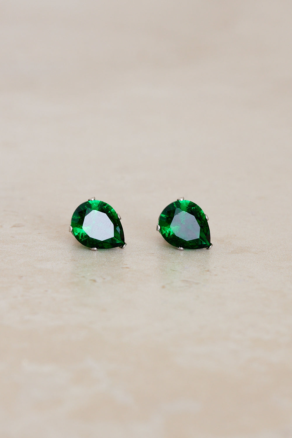 These stunning earrings feature vibrant jade-green stones in a teardrop cut, held in place by silver-tone prongs for a secure fit. The sparkling blue stones catch the light beautifully, making them perfect for both day and evening wear. These earrings come with simple stud backs, ensuring comfort and ease of wear, while adding a sophisticated pop of colour to any outfit.
