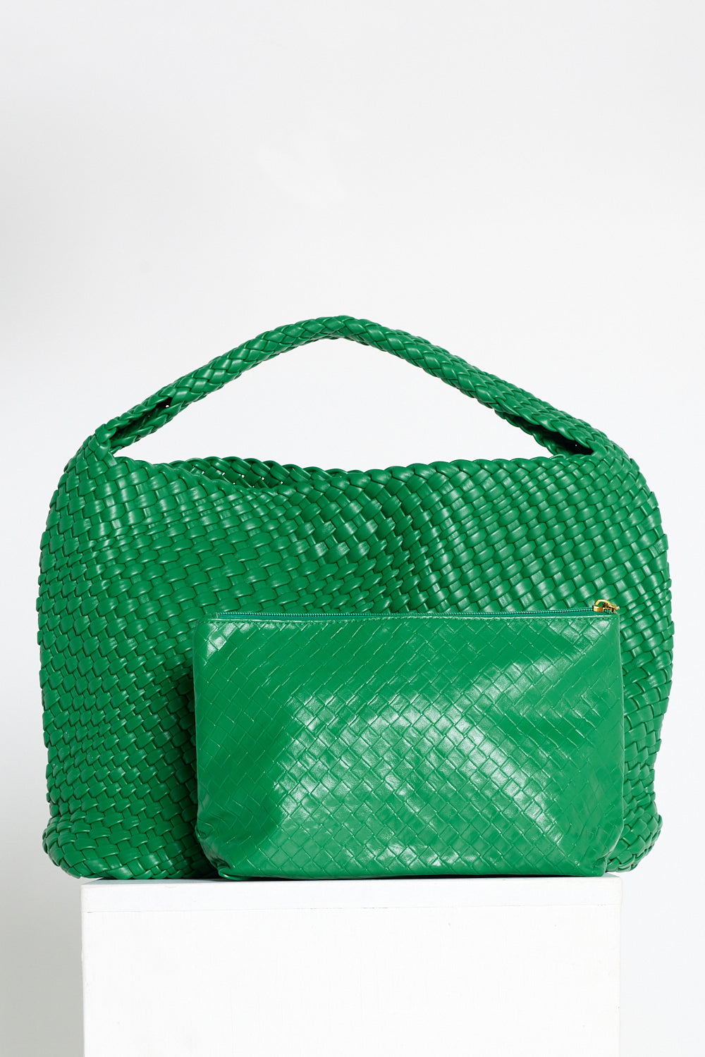 Woven Slouch Bag & Clutch - Grass Green