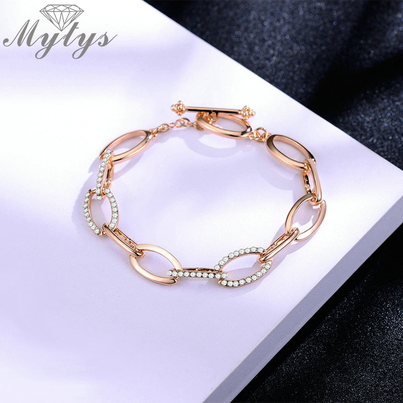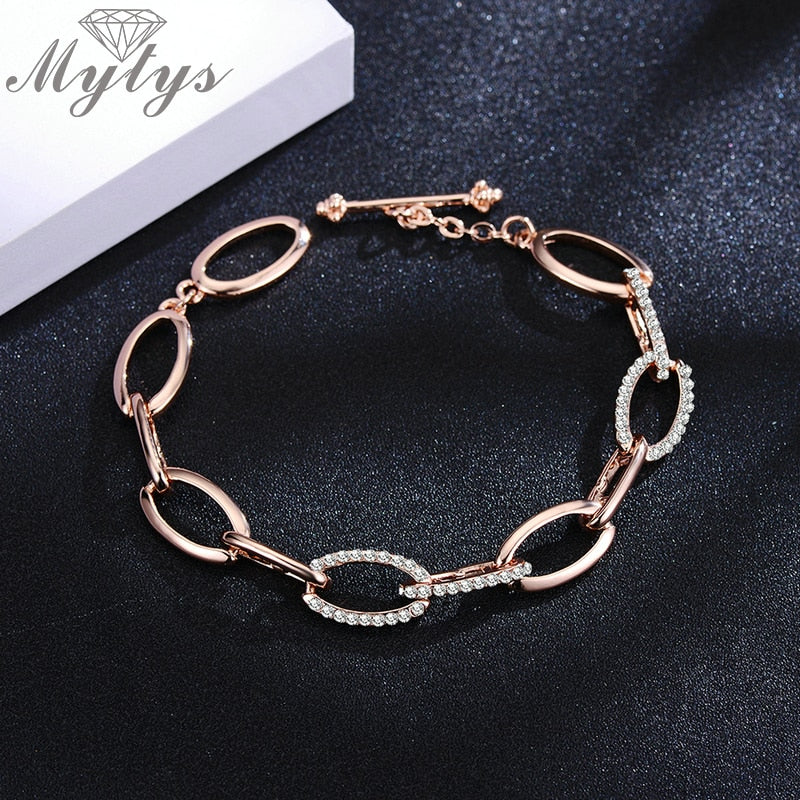 Rose Gold Link Chain Bracelets Invisible Setting Crystal Bracelets
