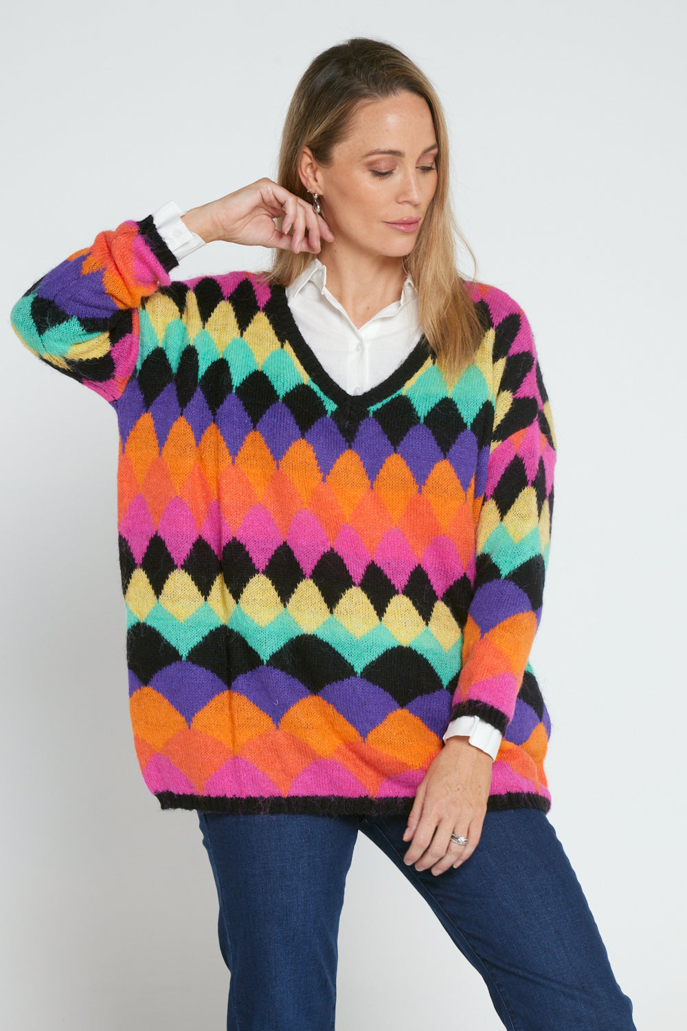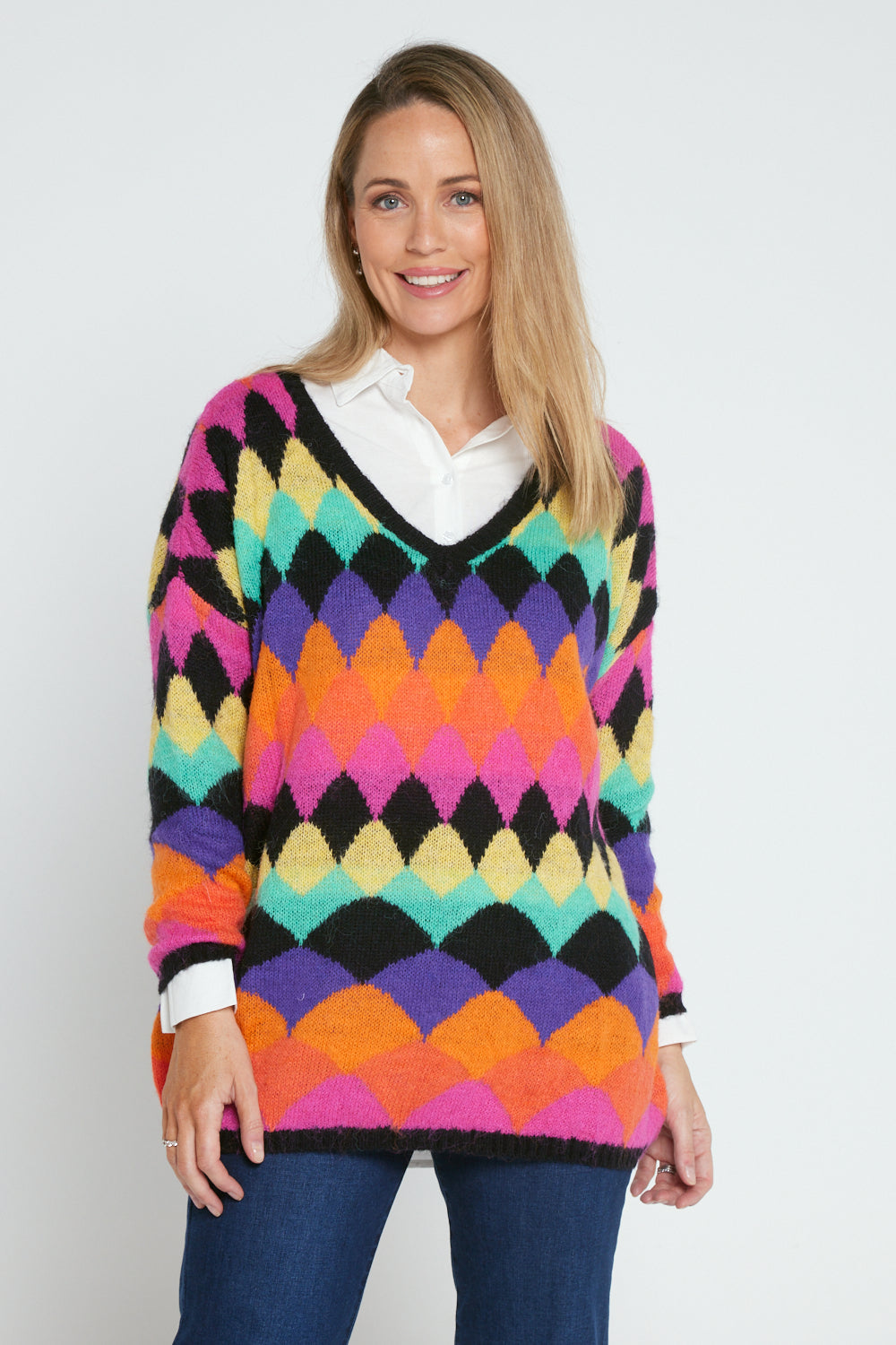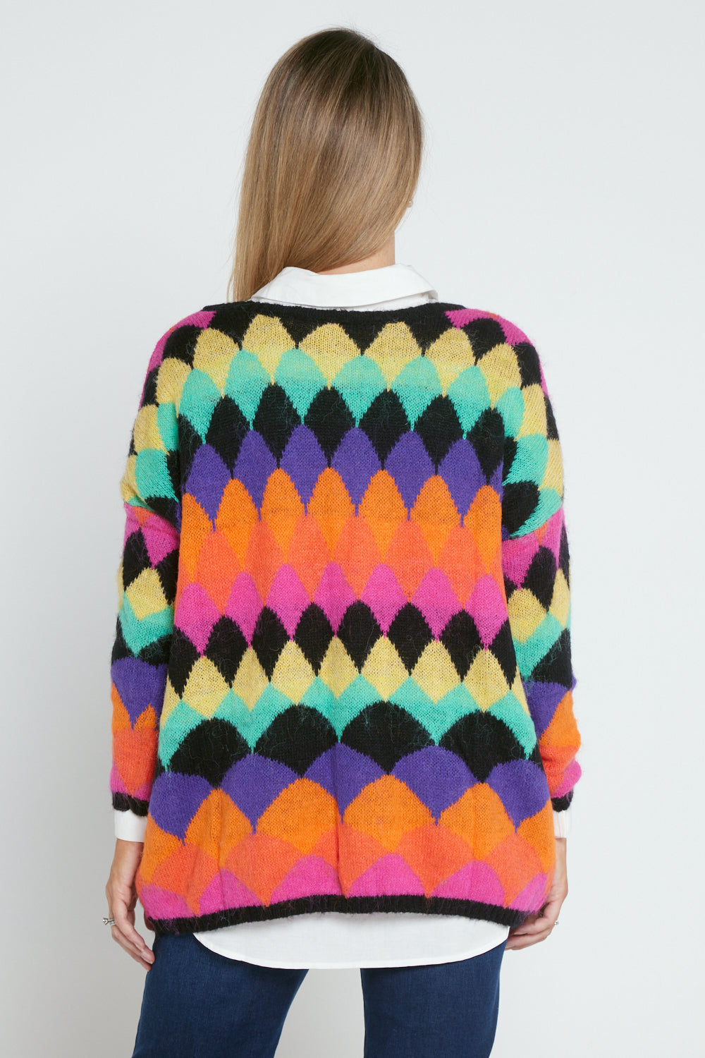 Argyle Knit Jumper - Black/Rainbow