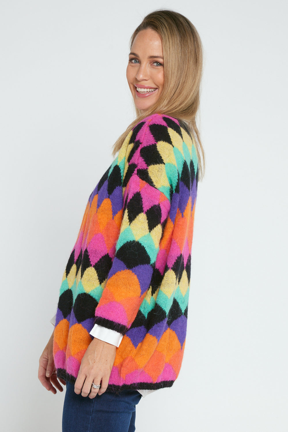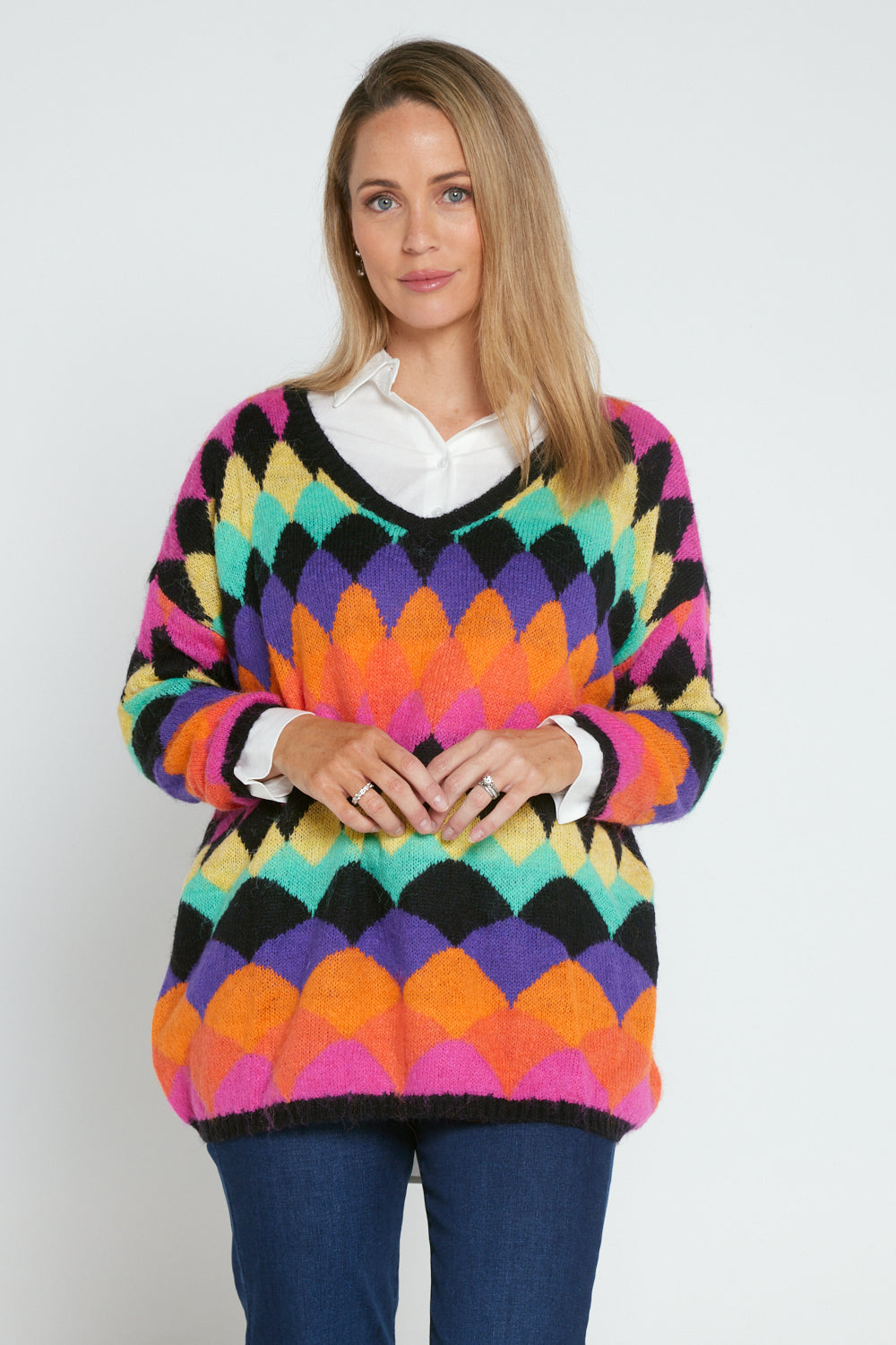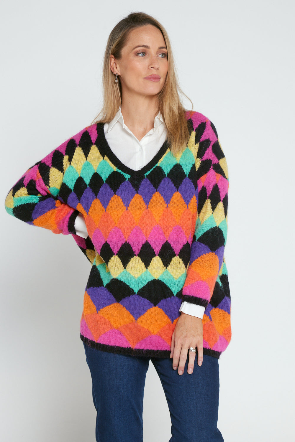Argyle Knit Jumper - Black/Rainbow