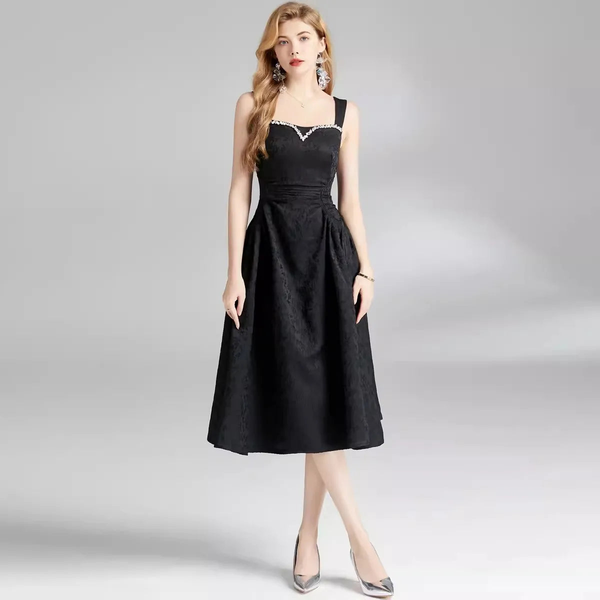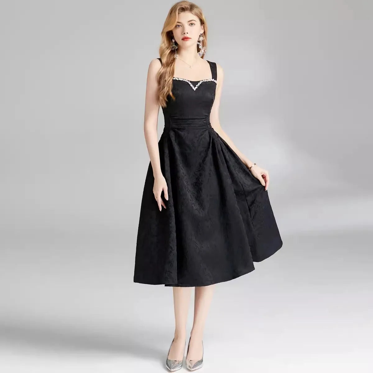 Experience the ultimate combination of style and comfort with our Sunny Stroll Midi Dress. The rhinestone decorations add a touch of glamour, while the mid-calf length and cotton material provide effortless elegance and all-day wearability. Elevate your wardrobe today!