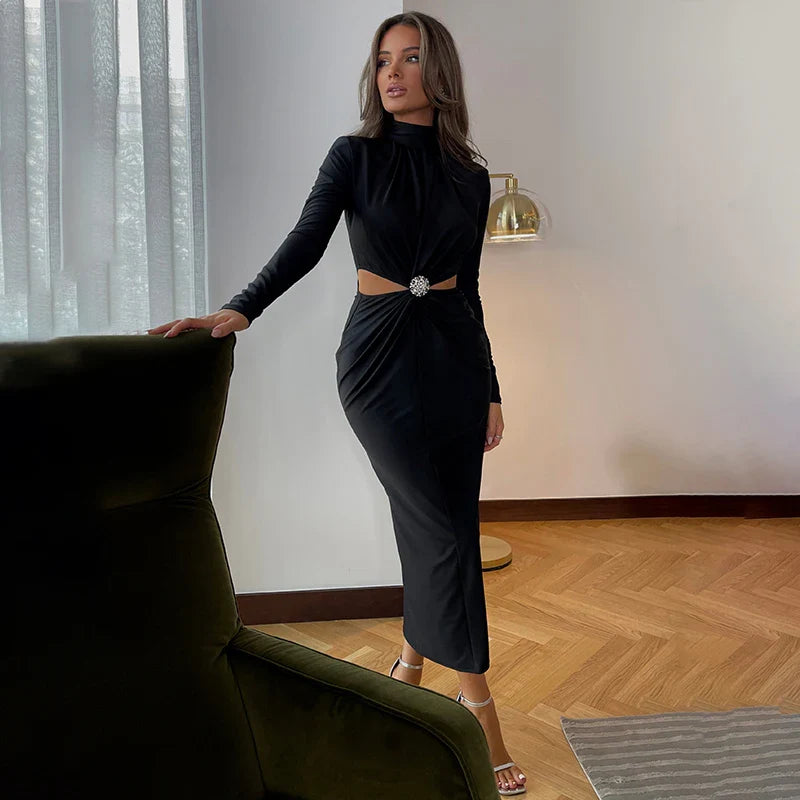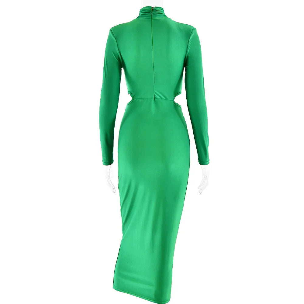 Embrace your inner goddess with our maxi dress. This solid dress is made with a blend of polyester and cotton for ultimate comfort. The elegant full-length silhouette is accented with a zipper for added flair. Make a statement and turn heads with this must-have piece.