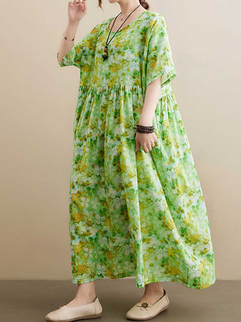 Looking for a fun and flirty summer dress? Look no further than The Leader Floral Printed Smock Dress! Made from a cotton blend. this cute and comfortable dress is perfect for warmer weather. The round neck and short sleeves keep it cool and casual. while the bold floral print adds a touch of personality. Whether you're picnicking in the park or exploring a new city. this dress is ideal for any summer adventure. Plus. it comes in the perfect shade of green to complement your sun-kissed skin. So don't wait any longer. add The Leader Floral Printed Smock Dress to your cart today!