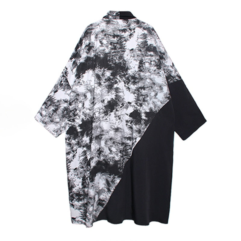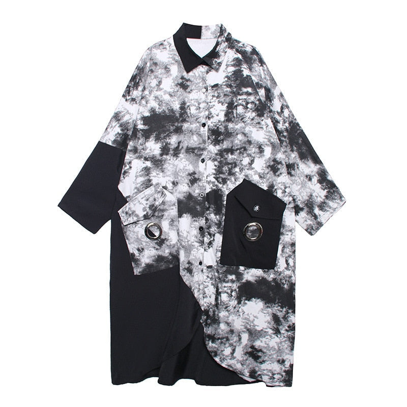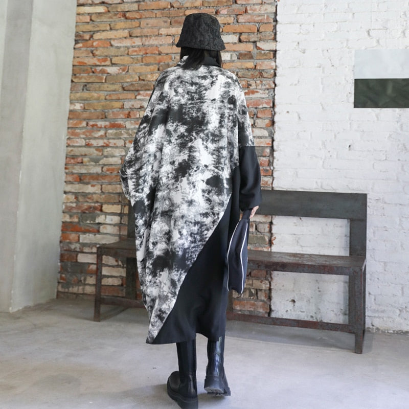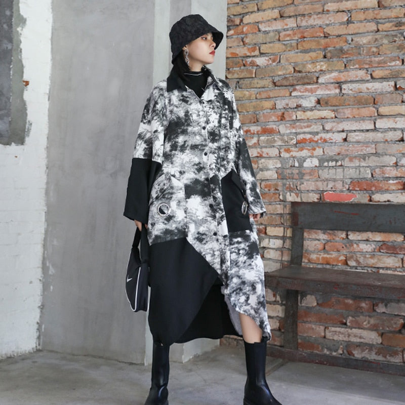 Abstract Pattern Trench Coat With Pocket Decoration, Single-Breasted Closure, Turn-Down Collar, And Cotton Polyester Material