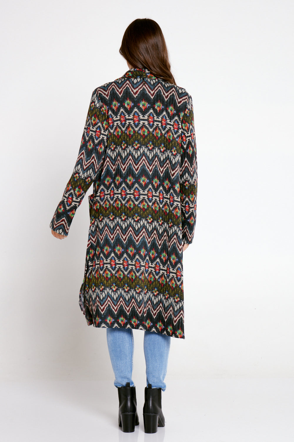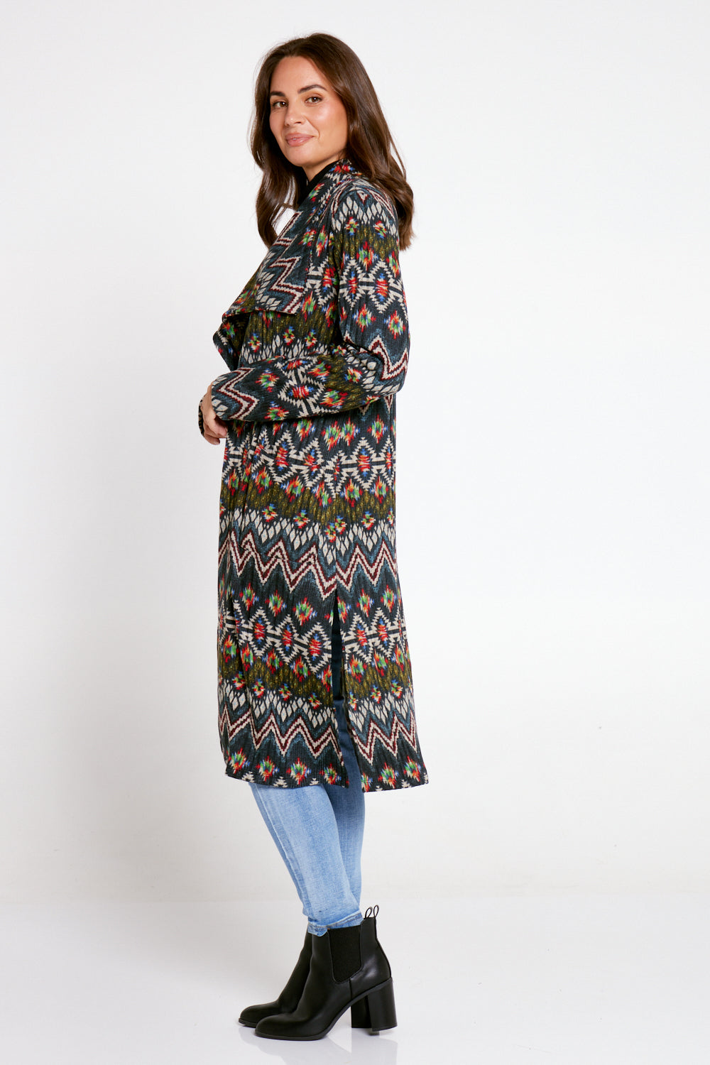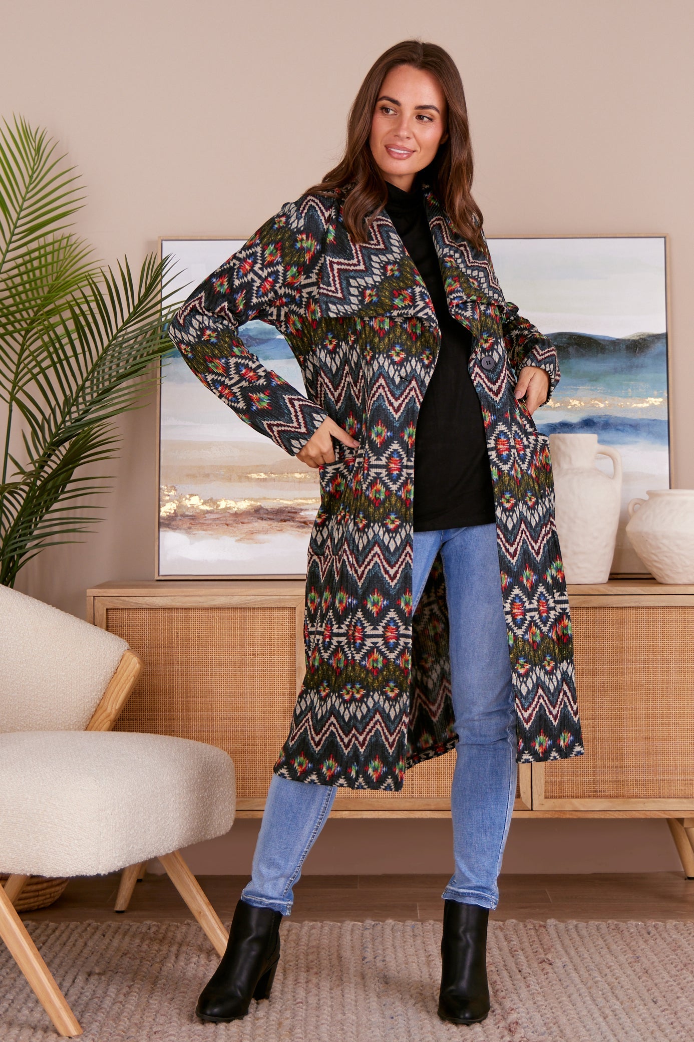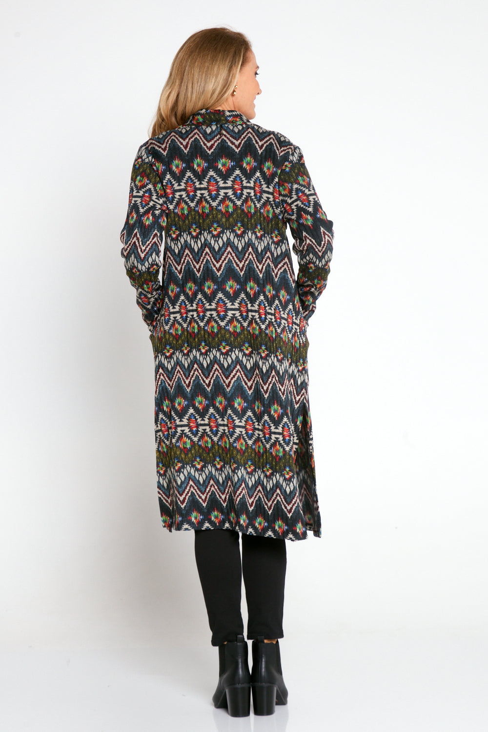 Lara Fleece Trench Coat - Navy Aztec