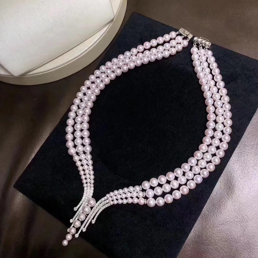 Multi-Layered Style Copper Necklace with Simulated Pearls