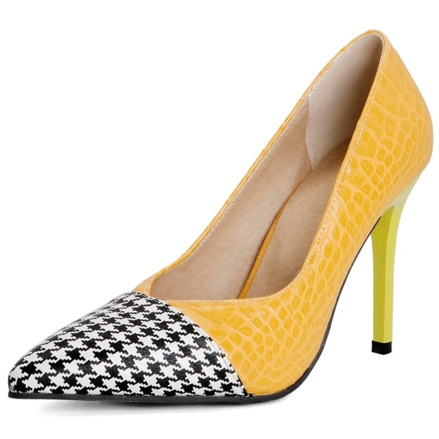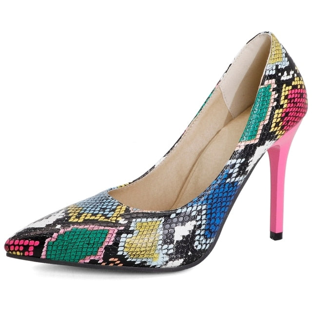 These stilettos have various patterns which you can match with your favorite outfit. The slip-on and pointed to give them a classic look. The Soft PU and rubber material give you a comfortable feeling that you can use every day.