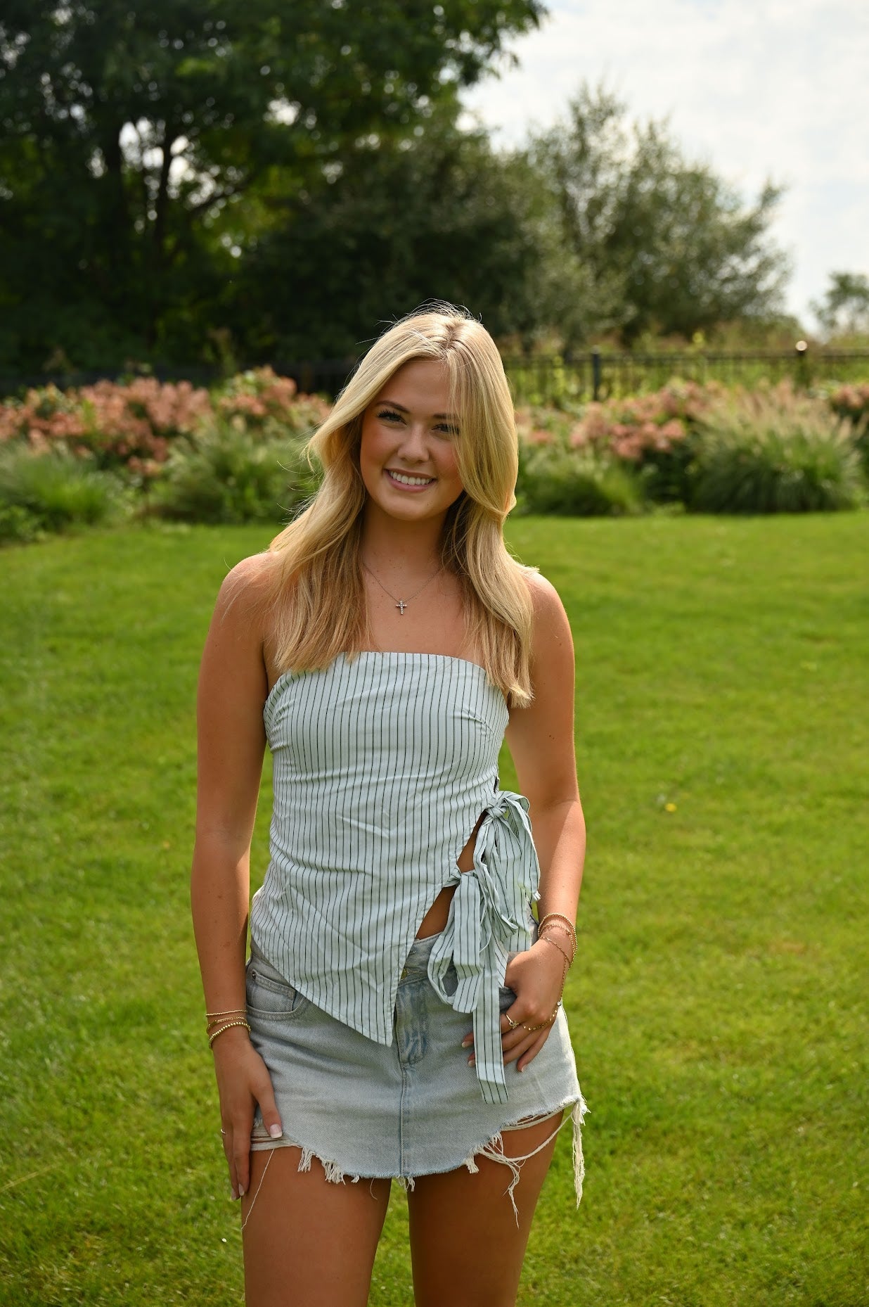 Turn heads with the Eyes on Me Top, a playful strapless tie top that’s perfect for sunny days and spontaneous adventures. Its adjustable tie design lets you customize your fit while keeping your look effortlessly chic and fun. Pair it with your favorite shorts or skirt for an easy, breezy vibe that’s all about confidence and style.