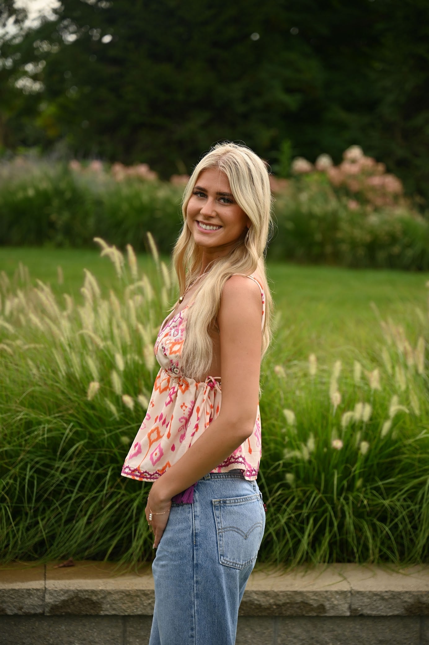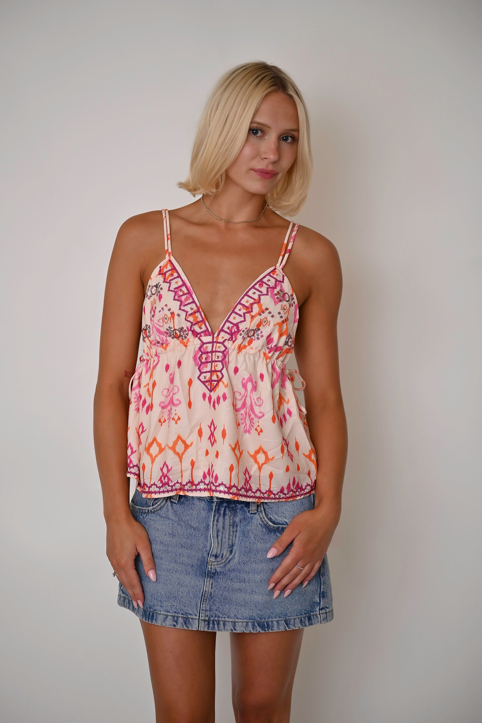 Introducing the Lauderdale Top - a trendy, feminine top with a playful pink print. Crafted for the fashion-forward individual, this top will add a touch of charm to any outfit. Stand out from the crowd with this cute and girly piece that is perfect for any occasion.