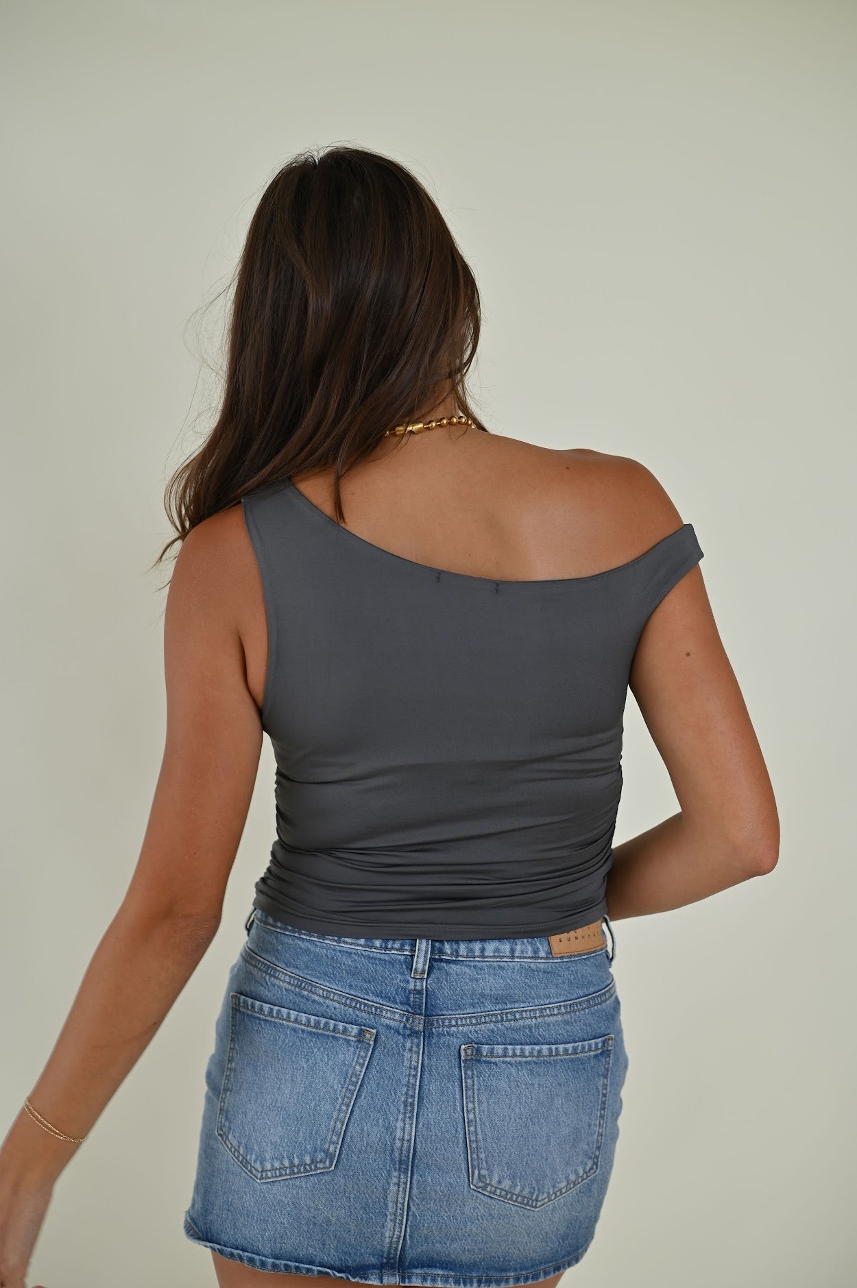 Enhance your wardrobe with this chic one-shoulder top. Designed for a flattering fit with ruched detailing, it offers a stylish yet comfortable look. Perfect for casual or dressy occasions, this top is available in multiple colors to suit any style. Pair with jeans or a skirt for a trendy outfit.