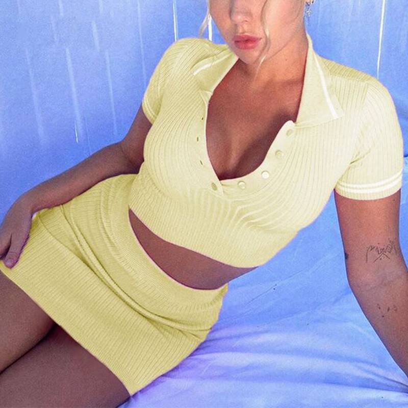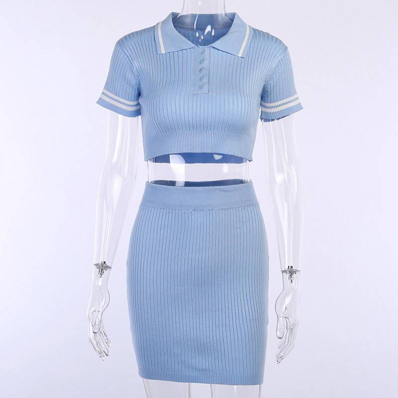 Cotton Spandex on V-Neck Knitted Skirt Sets