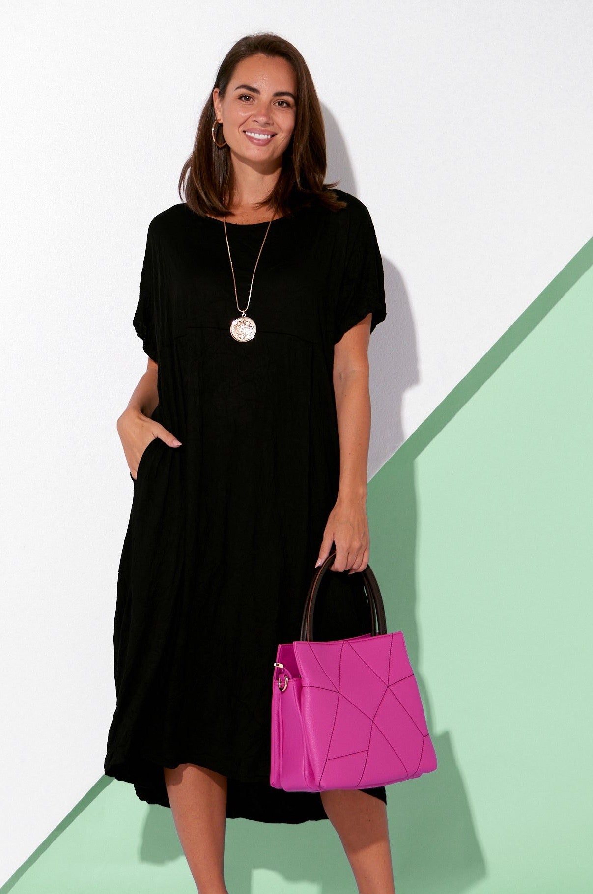 • Gold toned hardware