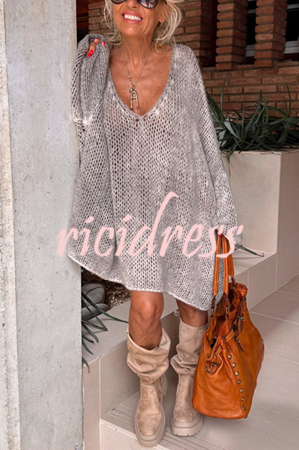 CozyVibe™ – Solid Color V-Neck Loose Knitted Sweater