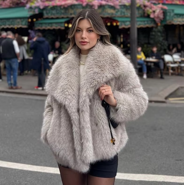 LuxuraFur™ – Elegant Faux Fur Coat