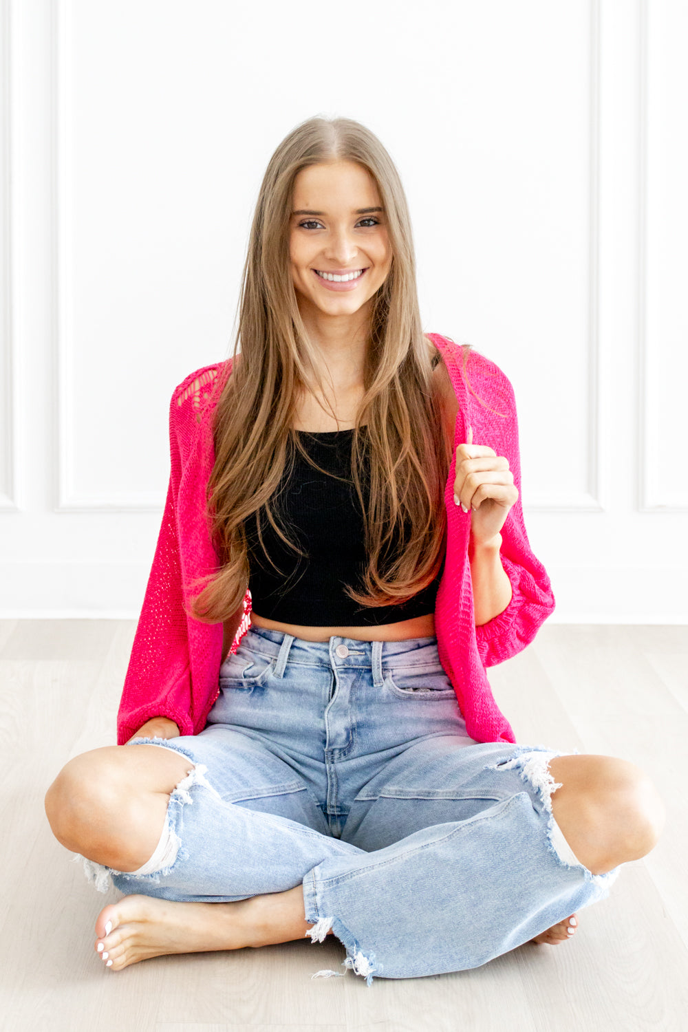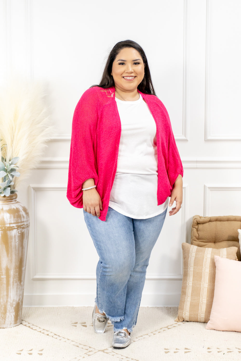 The Whispering Willow Cardigan effortlessly elevates your style while providing a touch of warmth on cooler days or breezy evenings - perfect paired with a tank top and jeans.