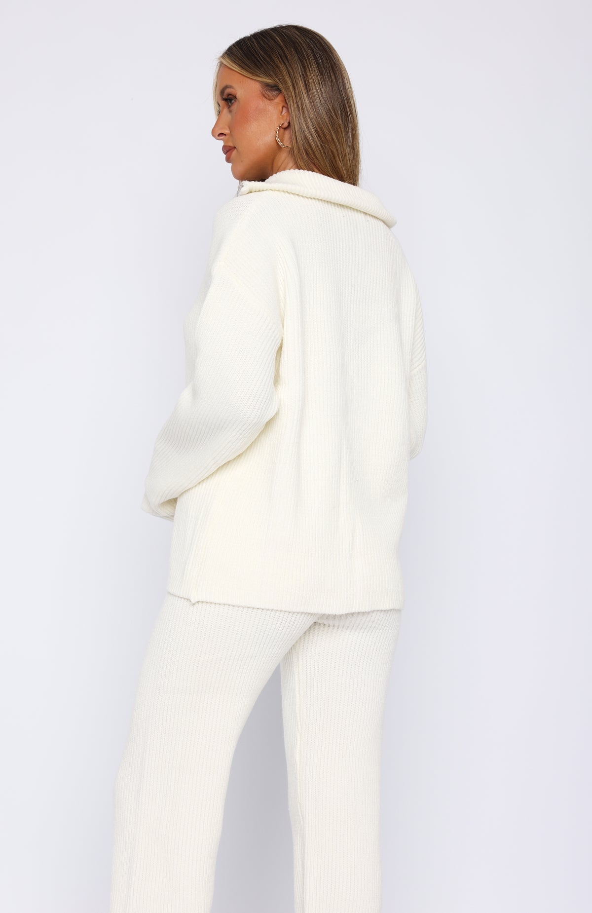 The perfect cool weather knit has arrived. The Let's Get Cosy Knit Sweater Cream features a relaxed fit, zip fastening at neckline and cost, soft fabric. Pair with the Let's Get Cosy Knit Pants Beige for a chic and cosy look. Now you're ready to take on those cooler days!
