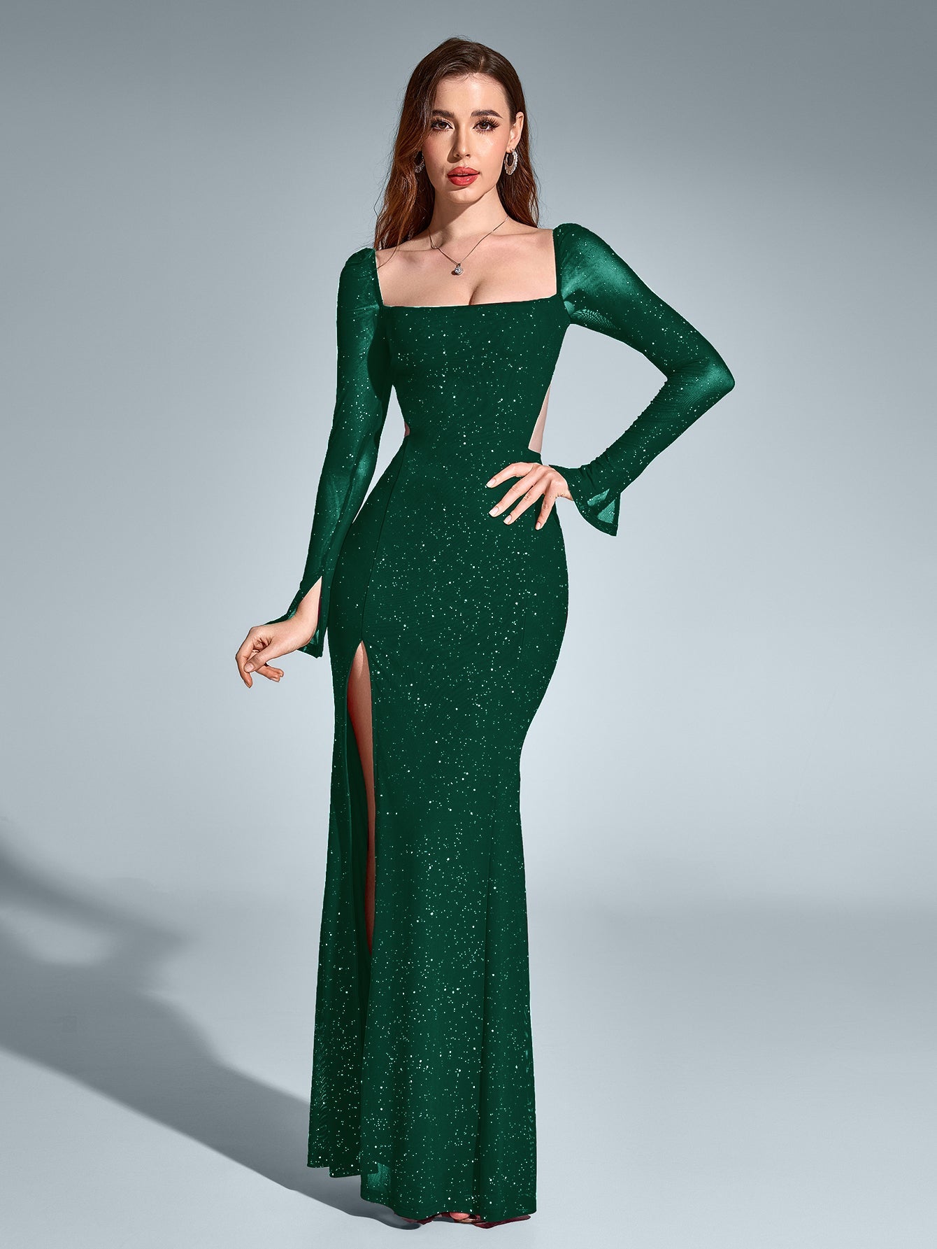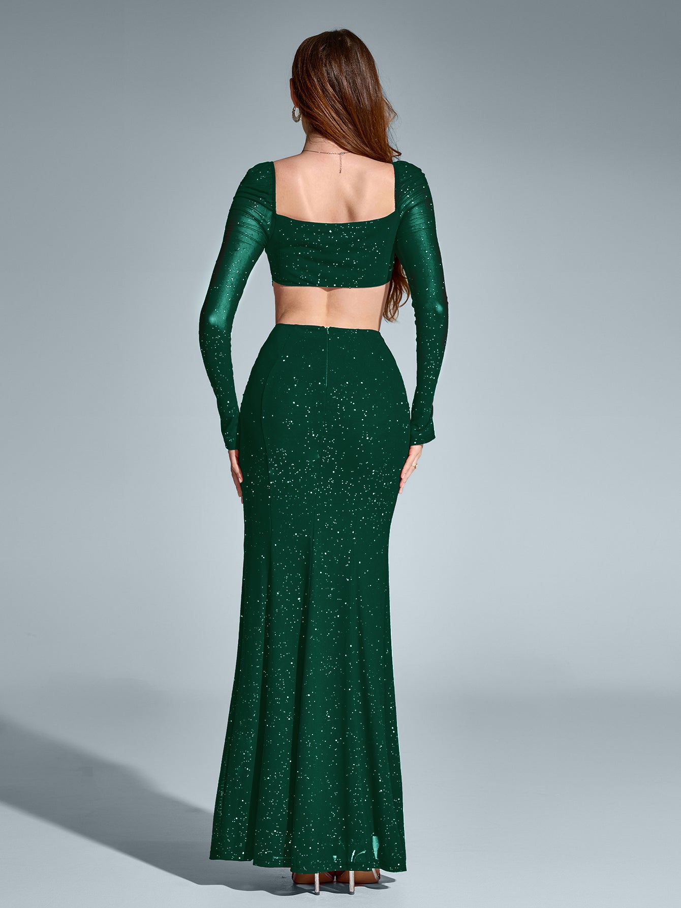 Cut Out Backless Split Thigh Mermaid Hem Glitter Dress