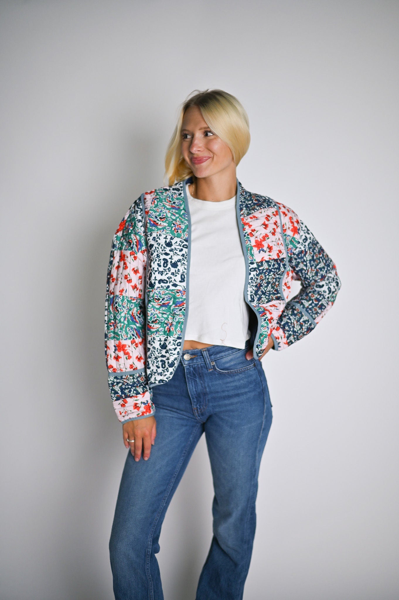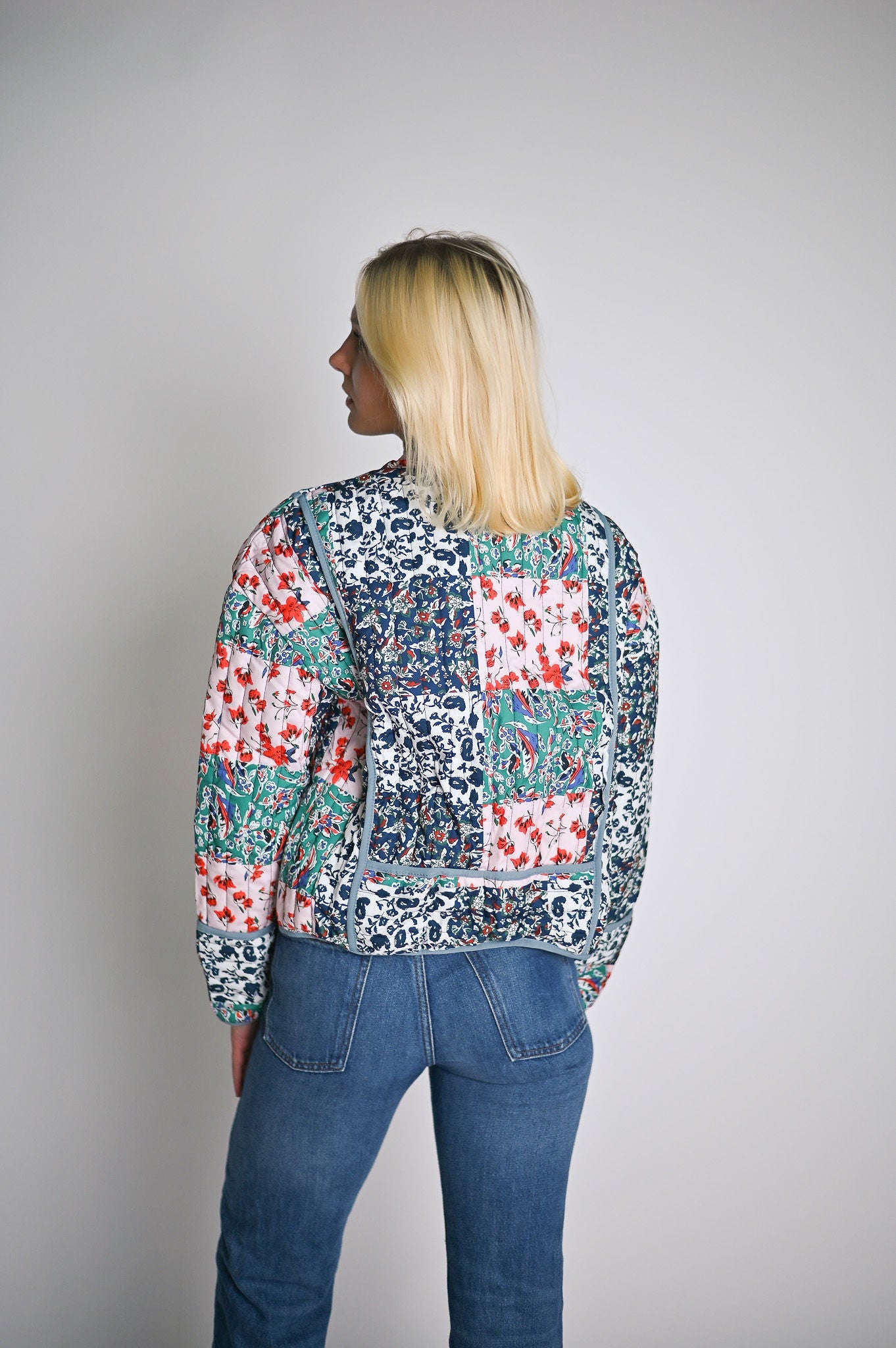 Embrace a blend of comfort and style with the Rule Quilted Jacket. Featuring a vibrant, patchwork-style print with a mix of florals and abstracts, it's a statement piece for any wardrobe. The relaxed fit and front pockets add practicality, making it perfect for those on-the-go days.