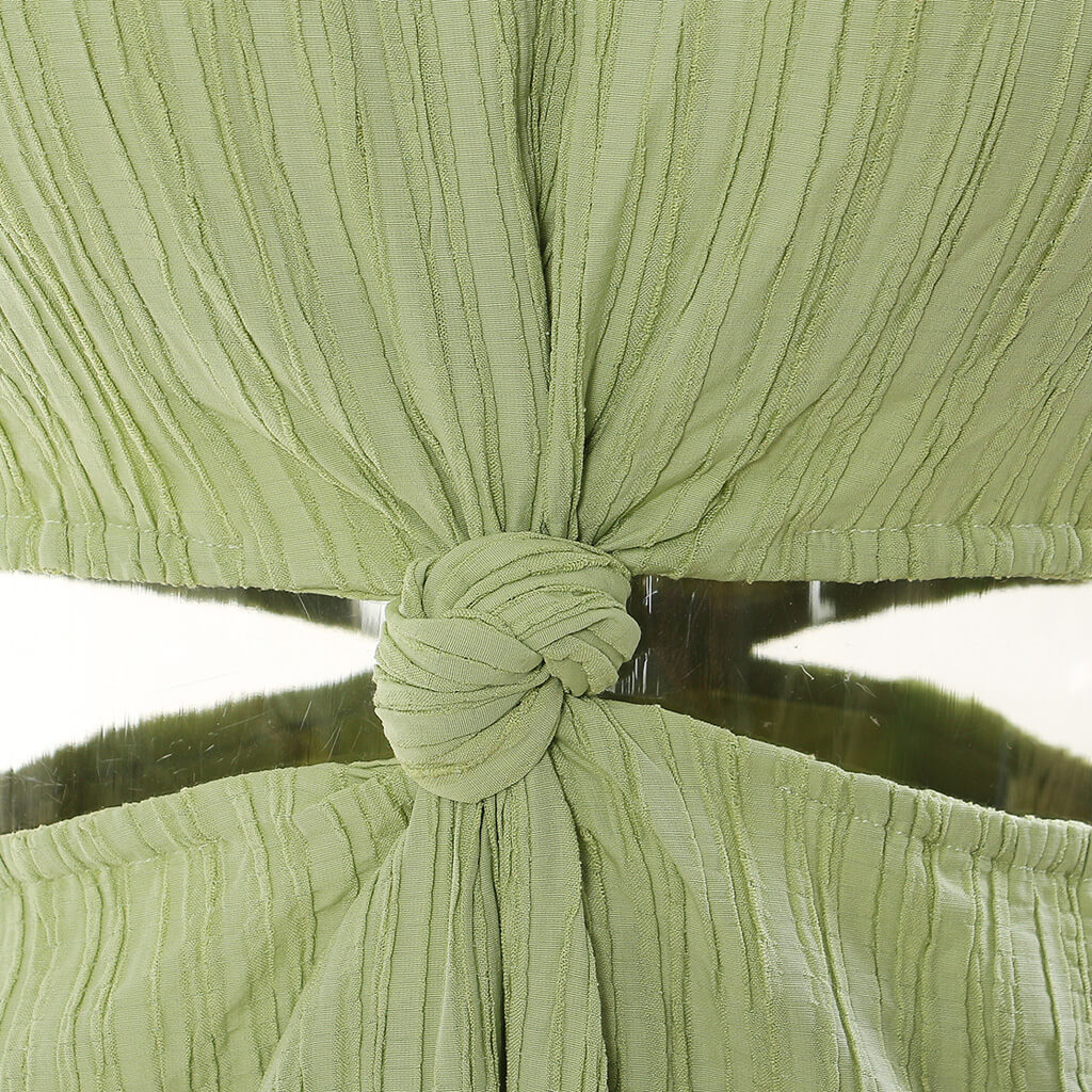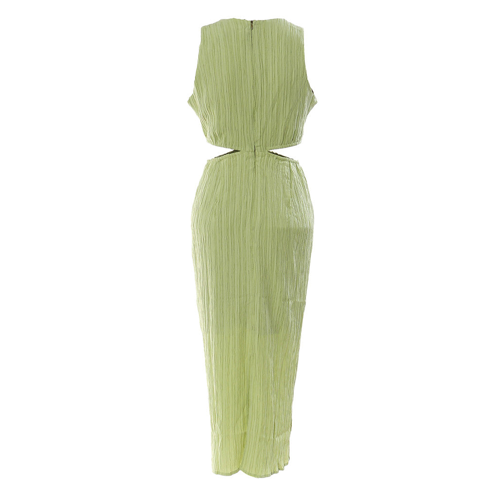 Textured Round Neck Knotted Front Side CutOut Slit Sleeveless Midi Dress
