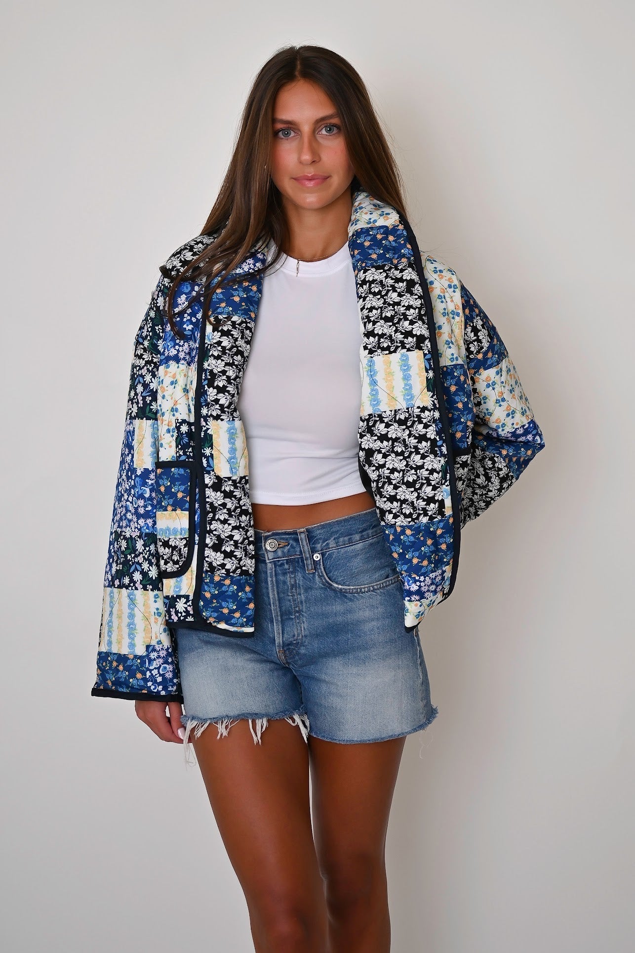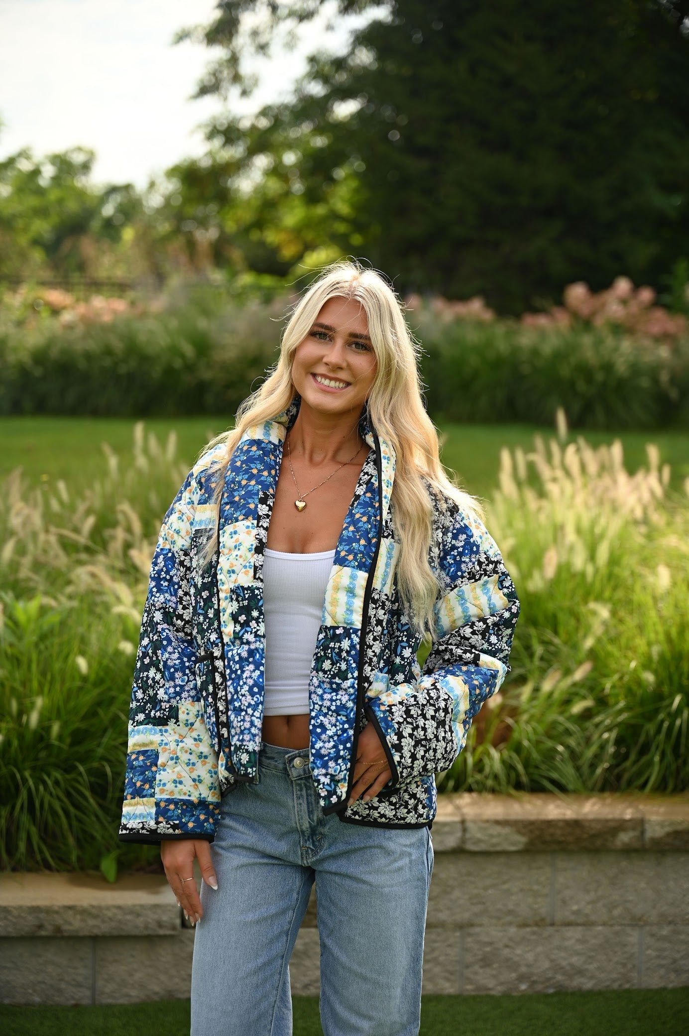 Wrap yourself in the eclectic charm of the Venice Quilted Jacket. This piece features a patchwork of florals in a quilted design, offering both comfort and boho elegance. Available in earthy brown, serene blue, and romantic red, it's a versatile statement jacket that brings a touch of Venice to your closet.